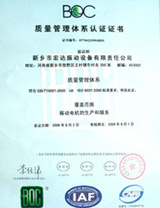 我公司振動(dòng)平臺(tái)產(chǎn)品通過ISO9001-2000質(zhì)量體系認(rèn)證,為新老客戶又增添了一份質(zhì)量方面的保障